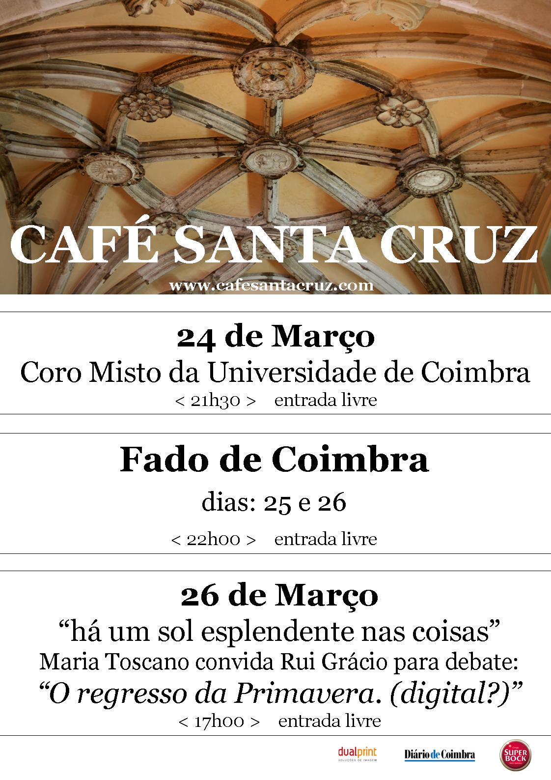 , concerto integrado no Corolário no café Santa Cruz às 21h30.